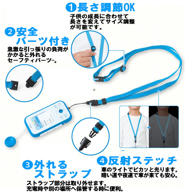【キーワード】ネックストラップ ファニーズ funny's こどもケータイ用ネックストラップ キッズ こども 短め 反射ステッチ 通販 長さ調節 外れるストラップ 安全パーツ 男の子 女の子 携帯 ストラップ 子供用 こどもケータイ 安携帯電話用ストラップ KNS01 4562471503818 4562471503801
