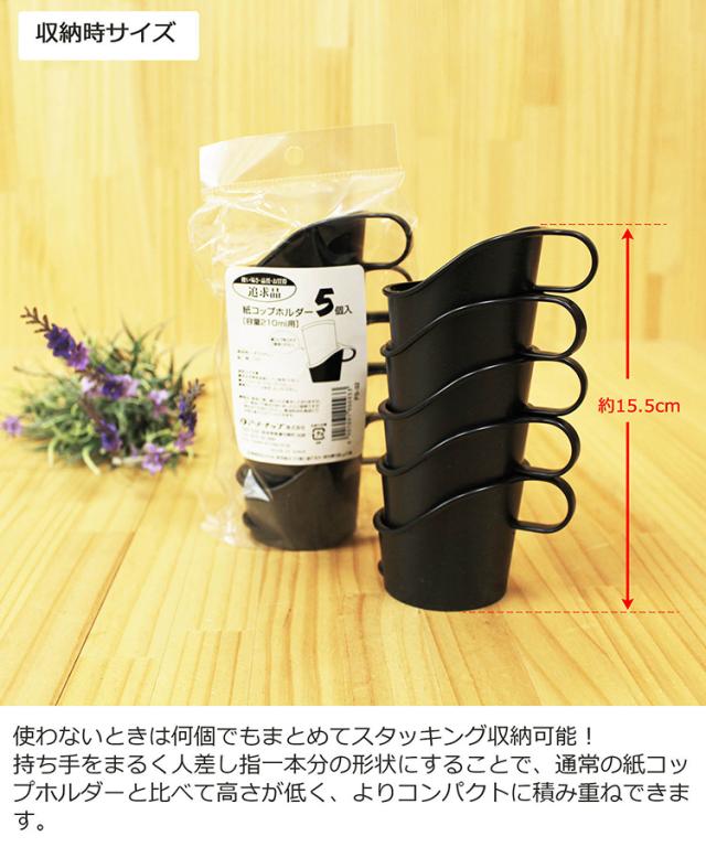 ●持ち手をまるく人差し指一本分の形状にすることで、通常の紙コップホルダーと比べて高さが低く、よりコンパクトに積み重ねできます。