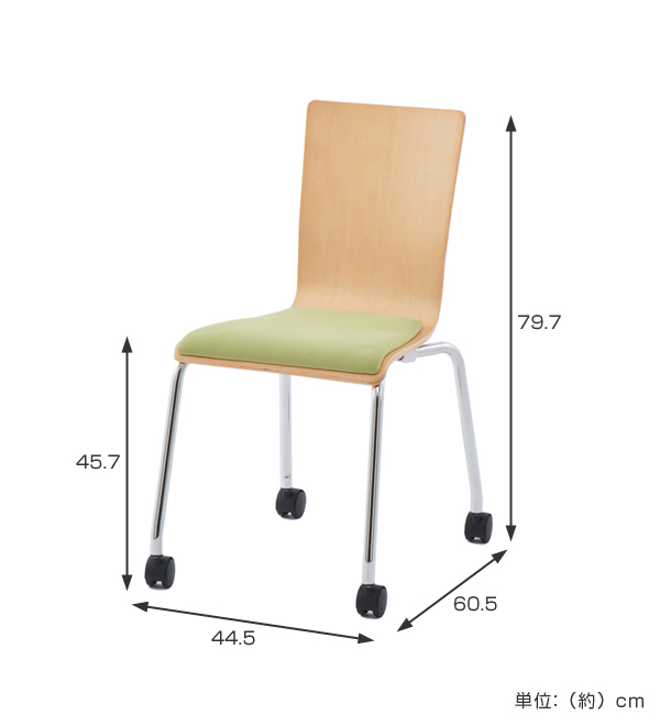 仕様:キャスター付き、座面パッド付き、4脚までスタッキング可※クッションに跡が残りますので長時間のスタッキングは避けてください。