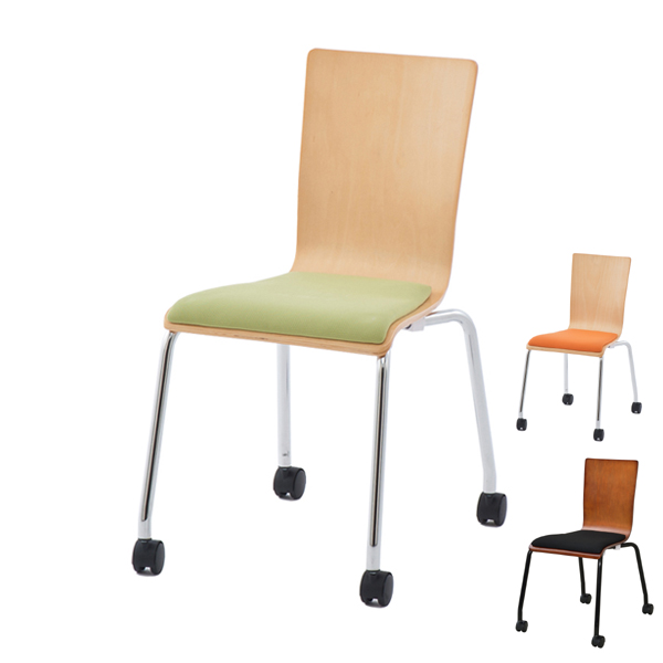 【法人限定】 オフィスチェア プライウッドキャスターチェア 4脚セット パッド付 シンプル チェア イス オフィス用 ( オフィス スタッキング スタッキングチェア チェアー 会議椅子 ミーティングチェア 椅子 キャスター セット )