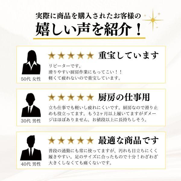 | こちらの商品は【標準サイズより大きめ(幅広3E相当)】です。 普段お履きのサイズより0.5cm小さいサイズをオススメします。 幅広設計なので、甲高・幅広の方も0.5cm小さいサイズをオススメします。 【男性スタッフKAI(172cm) 普段のサイズは、革靴27.0cm/日本製スニーカー27.5cmです】 私のジャストサイズはLL[26.5cm-27.0cm]でした。靴下を履いて、程よいフィット感のあるサイズです。 (個人差もございますので、目安とお考えください。) |