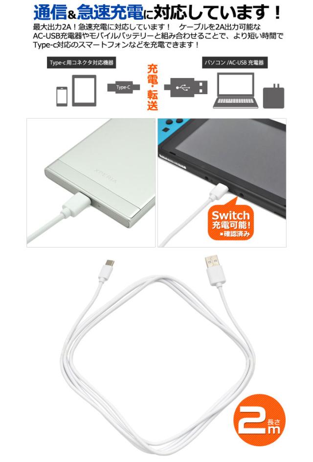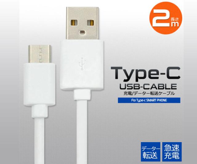 タイプC USB Type-C ケーブル 2m ホワイト 充電 通信 TypeC タイプC ケーブル 急速充電 2A メール便送料無料