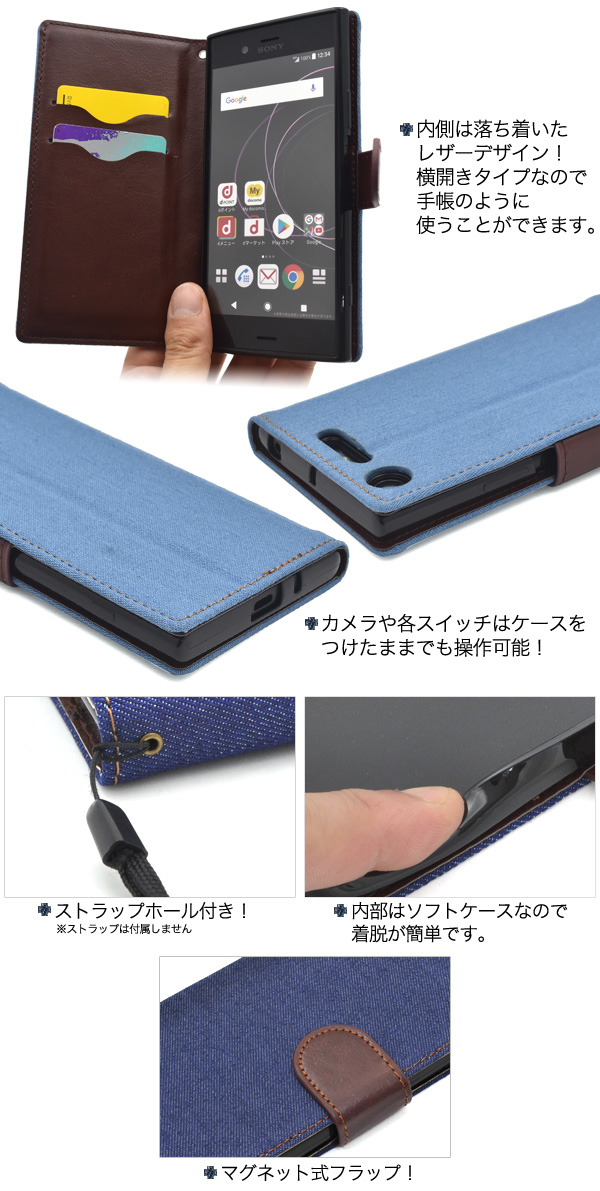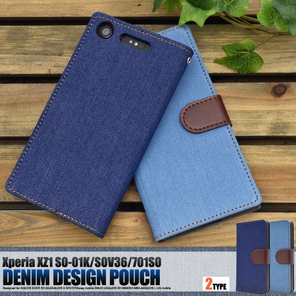 手帳型 Xperia XZ1 SO-01K SOV36 701SO用 デニムデザインケース シンプル かわいい スマホカバー 保護カバー 手帳 カジュアル
