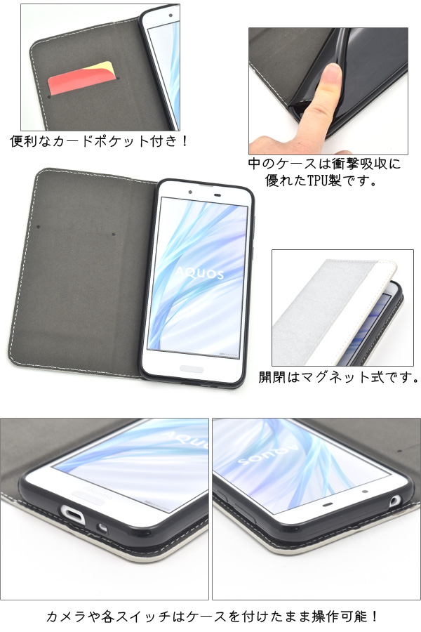 スマホケース AQUOS sense SH-01K SHV40 AQUOS sense lite SH-M05用 手帳型 ベルトなし シンプルレザーケース アクオスセンス 横開き