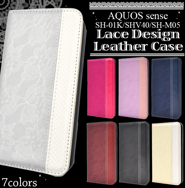 AQUOS sense SH-01K/SHV40/AQUOS sense lite SH-M05用手帳型レースデザインレザーケース