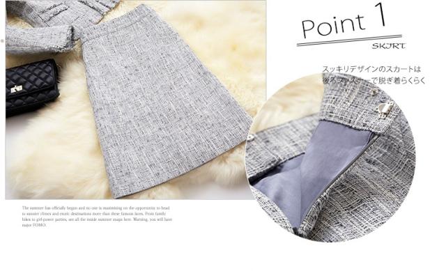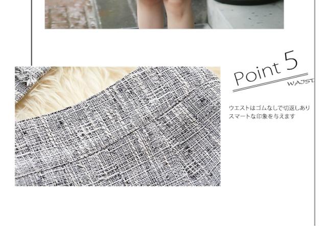 ● スカートはウエストゴムのないタイプ。すっきりとタイトなデザインが上質感を伝え、スマートな印象を与えます。