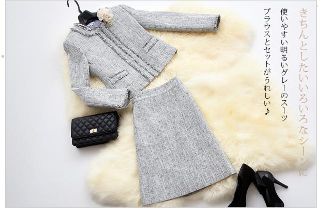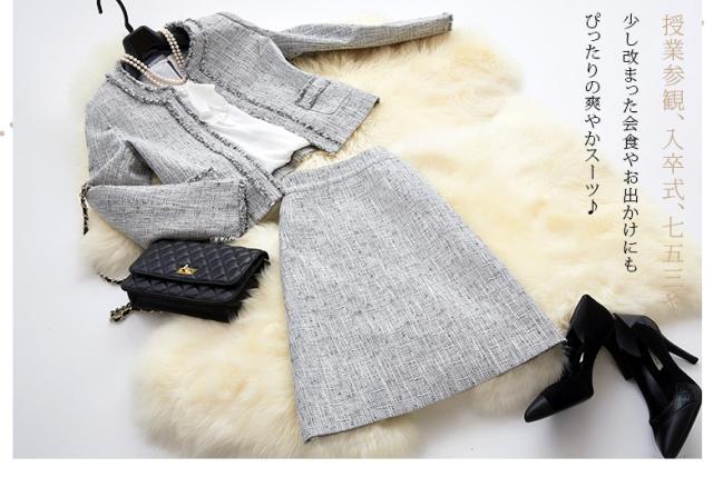 - 今春、娘2人の卒業&入学が重なり、着る機会も多いだろうと思い購入しました。卒業式には自前のフォーマルワンピにジャケットを羽織り、入学式には上下で着ました。スカートだけでも、前を開けてブラウスを着てもいいので着回しのバリエーションもきいて良い商品だと思います!着心地も悪くありません。サイズもいつも通りで大丈夫でした。