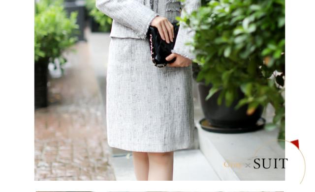 ● モノトーンでまとめて上司や取引先との会食に、学校行事に。インナーやコサージュに華やかな色を持って来れば、パーティシーンにもぴったり。
