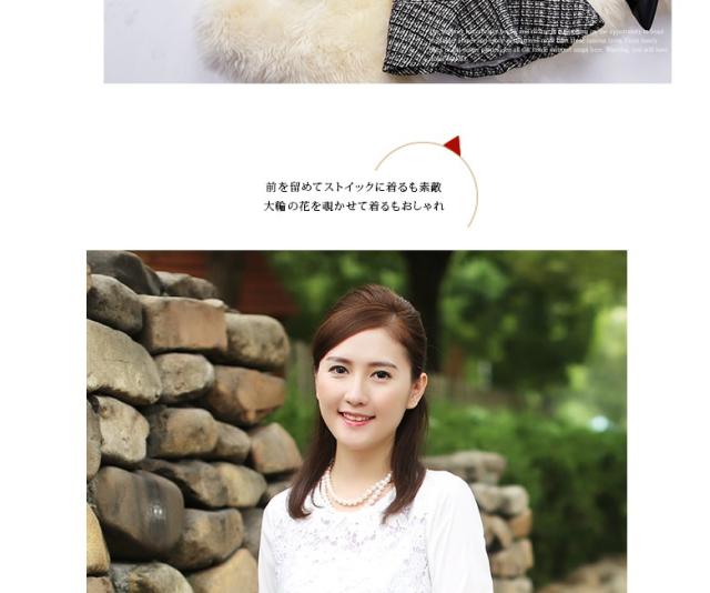 ● フロントは隠れたホックで胸元はすっきりライン。モコモコと立体感のある織りが上質さと暖かみを伝えます。