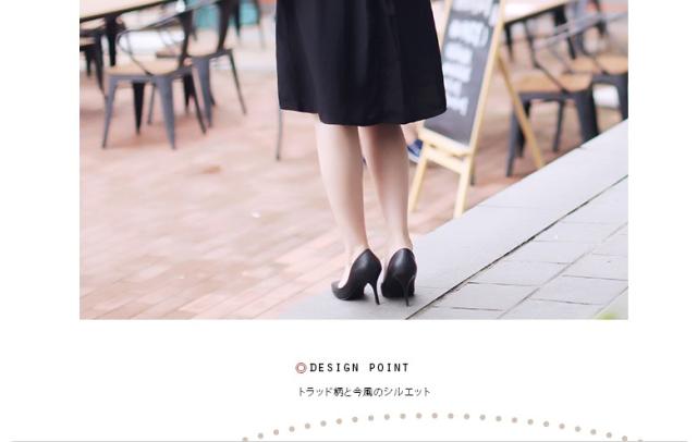 ● 膝で揺れる丈のスカートが、華やかで愛らしく、モノトーンが地味な印象になりません。 膝で揺れる適度な丈のスカートは、前後に5つのタック付きで華やかな広がりを持っています。