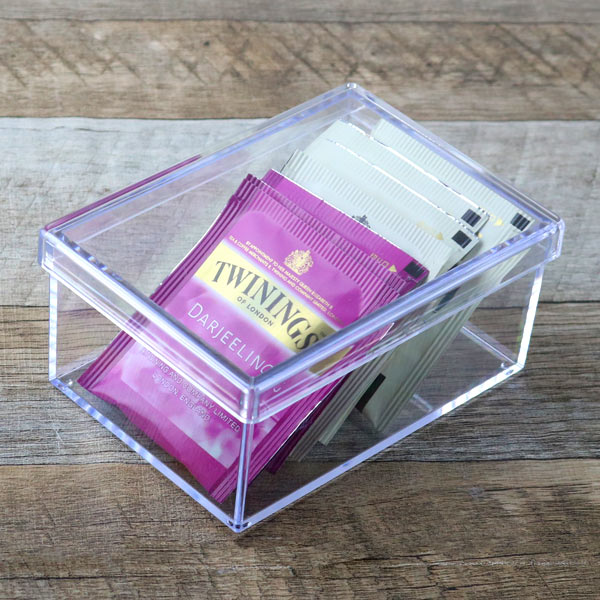 ティーバッグ、文房具、パーツ類、趣味の道具など細々したものをまとめるのに最適なクリアケースです。透明でシンプルなケースは、中が見えるので収納物を把握しやすいところも嬉しいポイントです。