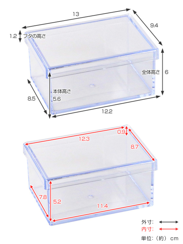 | サイズ | 外寸:約 幅13×奥行9.4×高さ6(cm) 内寸:約 幅11.4×奥行7.8×高さ5.2(cm) |