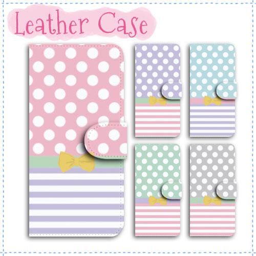 らくらくスマートフォン スマホケース 手帳型 全機種対応 F-53E ケース らくらくフォン カバー ドット柄 ボーダー リボン バイカラー 薄い白革 スタンド機能 送料無料 手帳ケース