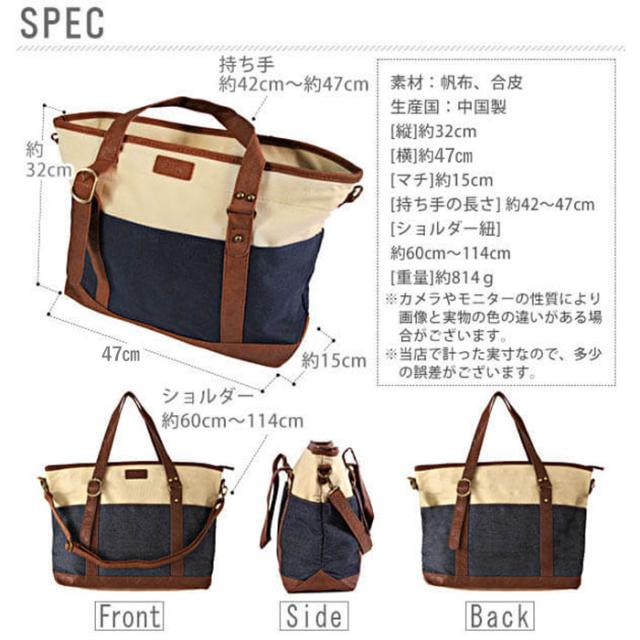 | 商品説明 | 大容量サイズで使い勝手の良いキャンバスツートーンビッグトートです。厚手の帆布生地に合皮を合わせカジュアルでおしゃれな仕上がり★ショルダーストラップも付いているので2wayでお使い頂けます♪ |