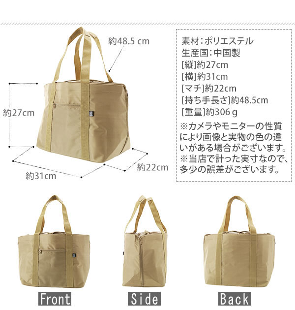| サイズ | [縦]約27cm×[横]約31cm×[マチ]約22cm 持ち手サイズ [長さ]約48.5cm 容量:30L ※サイズは当店平置き実寸サイズです。実際のサイズと多少の誤差が生じる場合がございます。ご了承ください。 |
