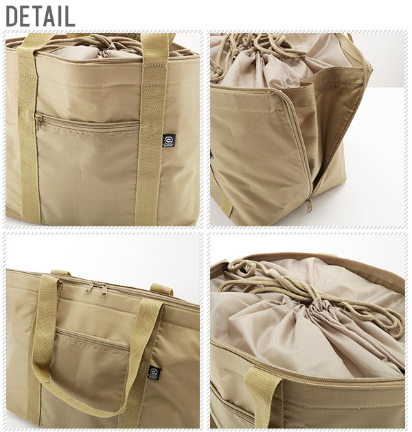 - 早速利用しました。 大容量なのに持ち歩いても邪魔にならず、ファスナーのおかげで雨でも中身が濡れません。 スマホが入る大きさのポケット(ファスナー付き)もあり、スマホ決済で買い物するなら、このバッグ1つで事足ります。 しかも、シッカリと丁寧に縫われていて、かなり丈夫そうです。 至れり尽くせりのとても良い商品だと思います。 (非常に厚みがあるので、折りたたんで他のバッグの中にしのばせるという使い方はムリでした。)