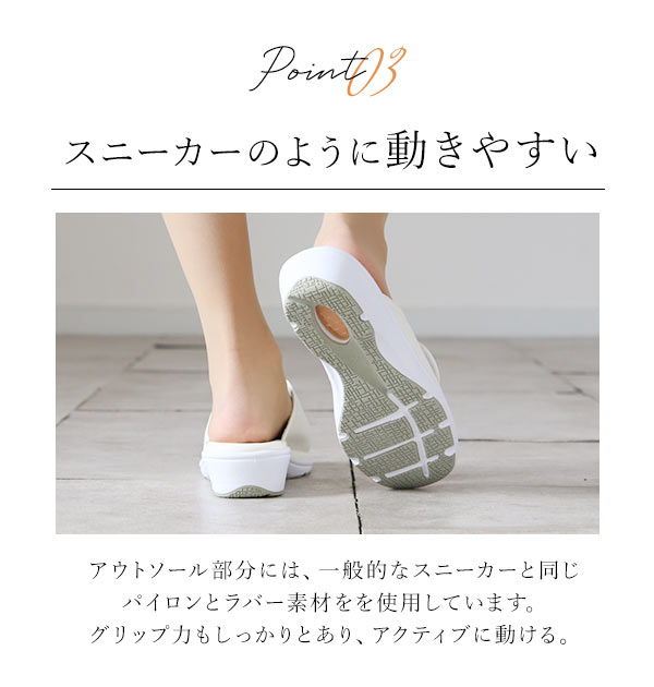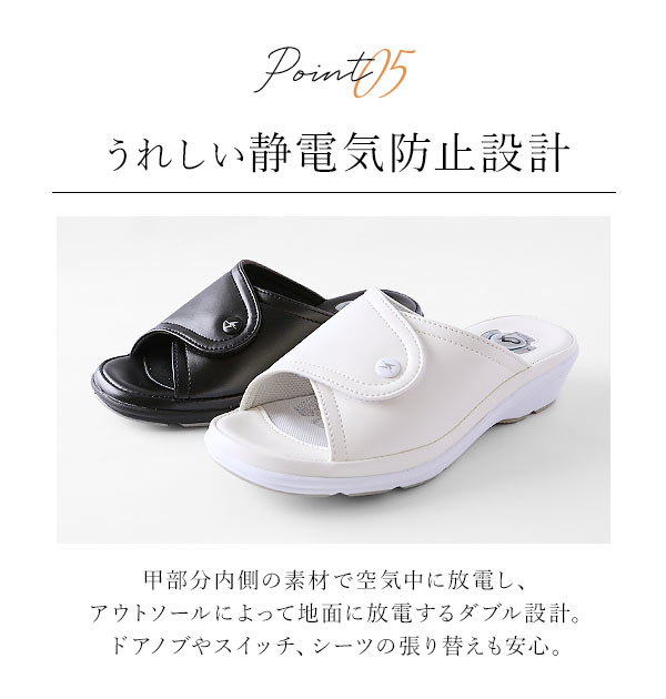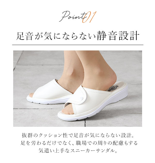 | 商品説明 | 履き心地抜群!走るとパカパカならないスニーカーサンダル♪制菌・防臭素材を採用しているので雑菌の繁殖と臭いの発生を抑えます。ソール部分に、スニーカーと同じ素材(パイロン + ラバー)を使用している為、スニーカー感覚でアクティブに動き回る事が可能!3Dクッションジェル、低反発スポンジ、ハニカムエアの3層の衝撃吸収機能が足裏の衝撃を分散し、負担を軽減します。ダブルの静電気防止機能搭載で不快な静電気を様々なシーンで防止!オフィスのドアノブやエレベーターのボタン、衣服の張り付き、車のドア、ベットのシーツ交換等、あらゆるシーンで不快な静電気を防止します。足幅調節可能だから足にぴったりフィット。足の形に合わせてサイズ調整出来るから、夕方に足がむくんでも安心です。ナースシューズ、オフィスシューズ等に最適です。 |