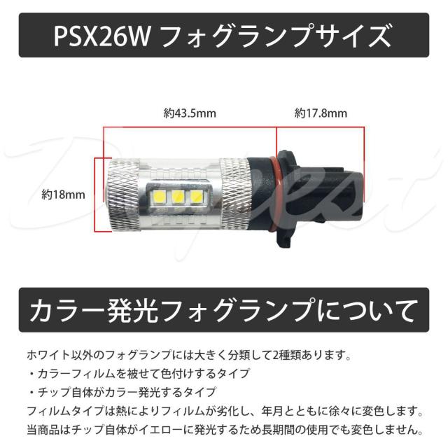 LED フォグ ランプ イエロー PSX26W 80W 黄金色 最新型 バルブ 汎用 ライト バルブ