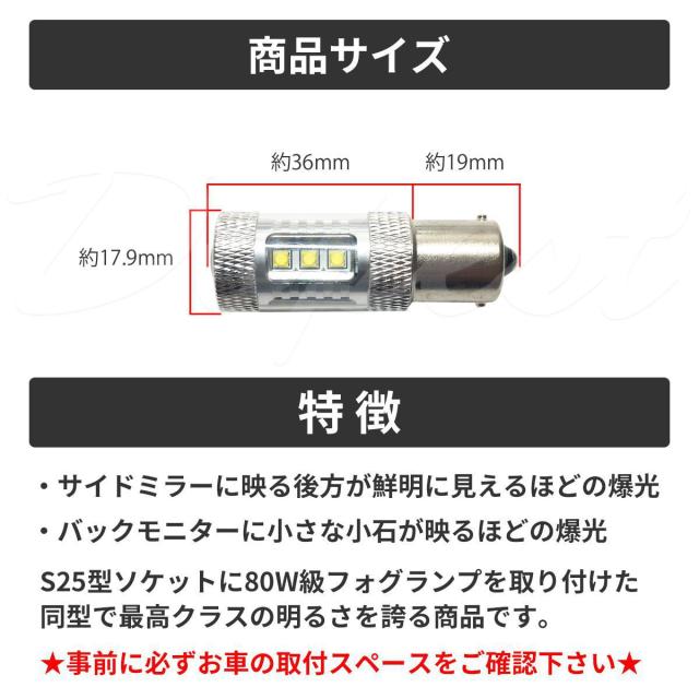 S25 BA15S LED バルブ シングル 80W 16連 バックランプ 2個 新型 汎用 ライト