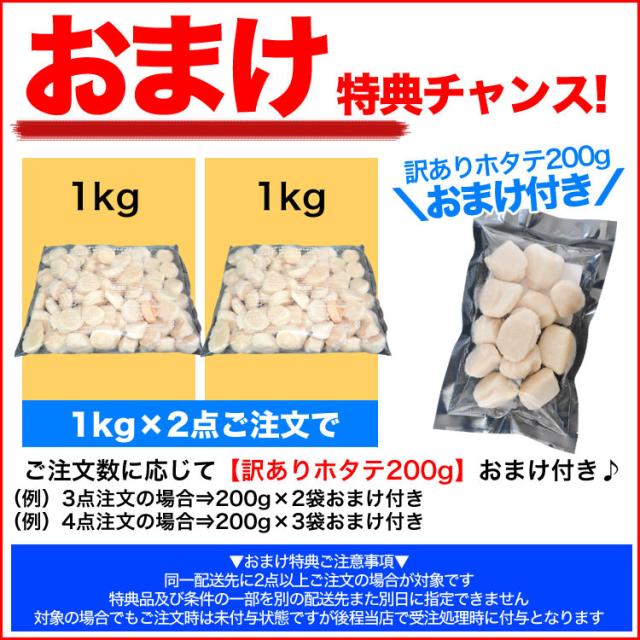 【お徳用 業務用】 1kg 北海道産 生食 ホタテ 貝柱 玉冷 訳あり A品 新鮮 急速凍結冷凍 【2点以上から注文数に応じオマケ付き】 [ 訳有 わけあり 不揃い 帆立 ほたて 刺身 海鮮 丼 寿司 ]