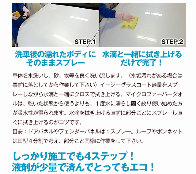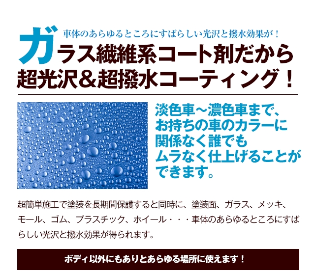 超簡単作業で塗装を長期間保護すると共にすばらしい光沢と撥水効果が得られます。