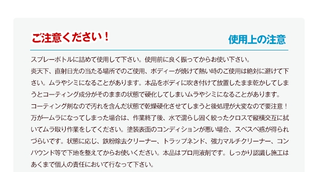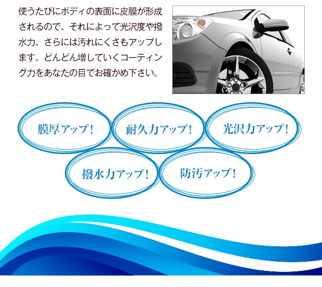 硬化型ガラスコーティング施工後のメンテナンス剤としても最適です。犠牲膜となり硬化型ガラスコーティングを長持ちさせます。