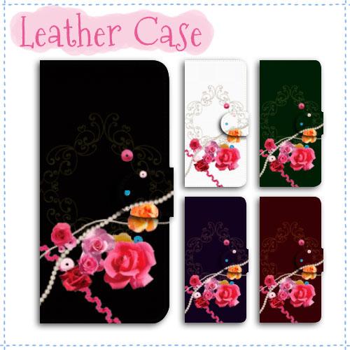 AQUOS sense6 手帳型 スマホケース 全機種対応 SHG05 ケース 分厚い白革 オシャレ バラ×パール 送料無料 アクオス sense6 スマホケース aquos shg05 手帳型