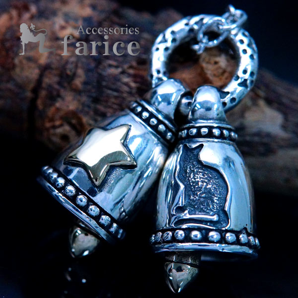 シルバーアクセサリー ベル 鐘 ツイン ネコ 猫 スター 星 ゴールド メンズ レディース ペンダント ネックレス
