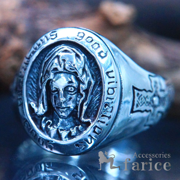 シルバーアクセサリー マリア 聖母 クロス 十字架 指輪 メンズ フリーサイズ リング