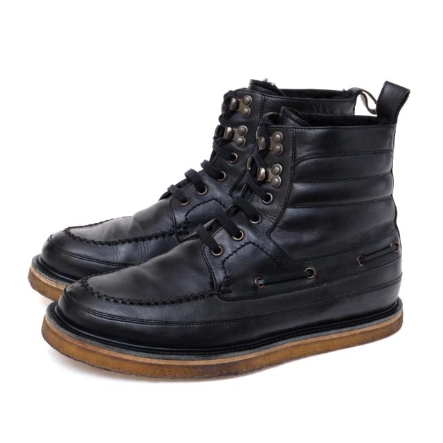 ○ボッテガヴェネタ BOTTEGA VENETA カーフ 牛革 レースアップブーツ ボア モカシン クレープソール メンズ 【中古】 中古