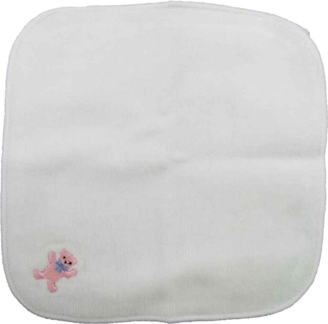 ピンクのくまの刺繍が可愛いミニタオルです。