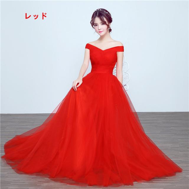 高品質 ロングドレス パーティードレス 舞台ドレス ワンピース オフショルダー ピンク 赤 二次会 発表会 演奏会 オーダーサイズ可 D011
