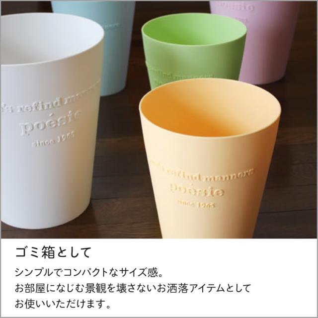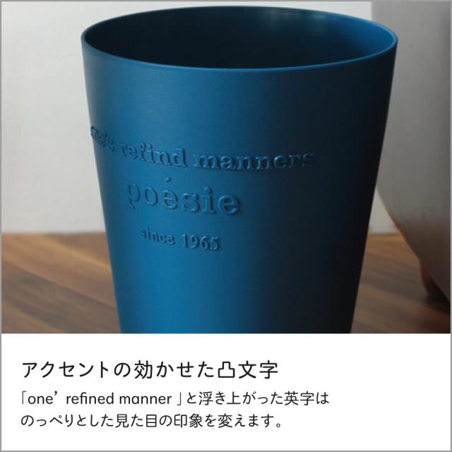 まるで陶芸品のような質感と、凸文字で刻印された「ポエジー」は「詩情」の意を持ち、「one’ refined manner 〜 自分の洗練されたマナー 」(ゴミは、ゴミ箱へ…)を綴った商品です。家の中でも、外出中でも、洗練されたマナーは、大切。を込めました。