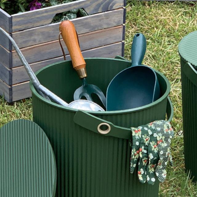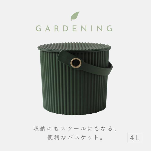 ガーデニングで大活躍!スツールにもなる4Lバスケット。ガーデニンググッズをひとまとめに収納、整理できて作業がはかどります。