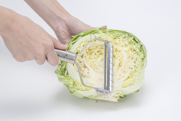 ●皮むきだけではなく、キャベツの千切りや大根のかつらむきにも便利なワイドタイプのピーラーです。