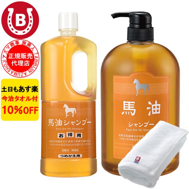 馬油シャンプー ボトル & 詰め替え用 1000ml アズマ商事 馬油 シャンプー 旅美人 10%OFF 今治タオル付 送料無料