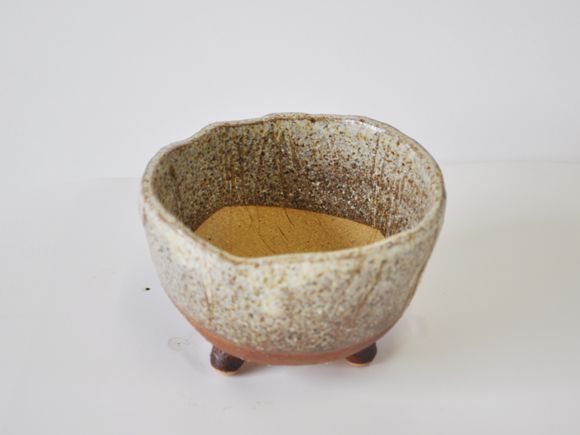 鉄砂三ツ足 [山野草鉢][4号][信楽焼] 幅11cm×高さ7cm【山野草鉢 4号 鉄砂三ツ足 信楽焼 植木鉢】
