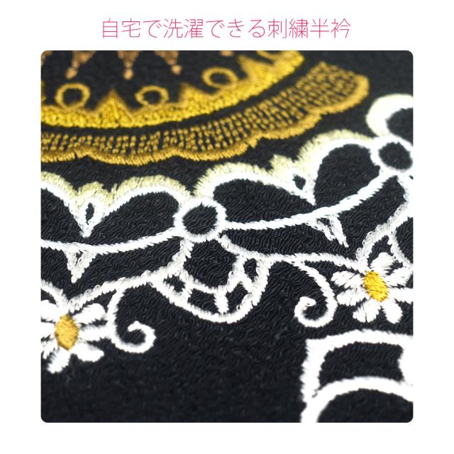 刺繍半衿 振袖 オシャレ着 洗える半衿 洗濯可 日本製 【メール便送料無料!】黒 唐草