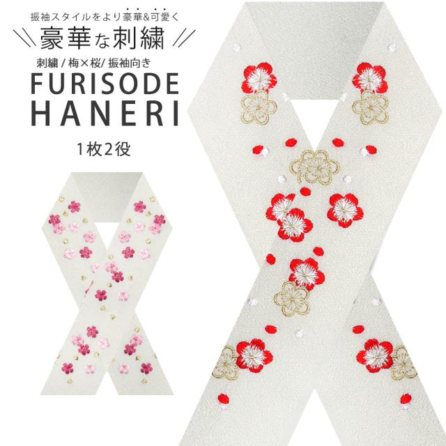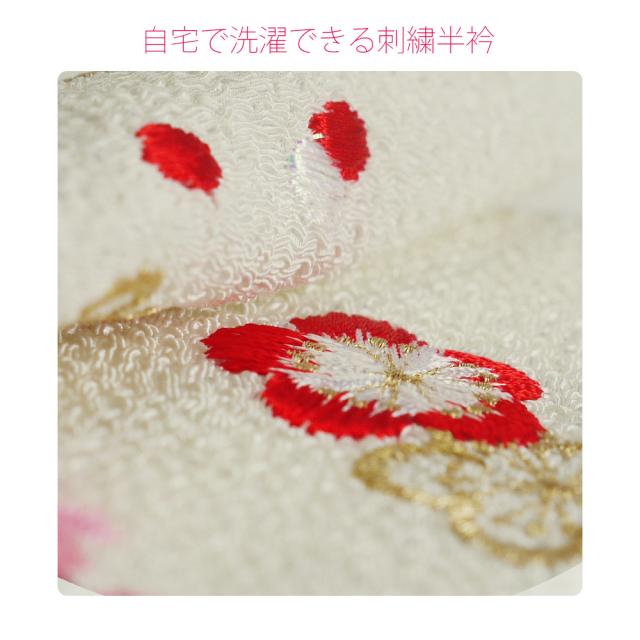 刺繍半衿 振袖 オシャレ着 洗える半衿 洗濯可 日本製 【メール便送料無料!】生成り色 梅 桜