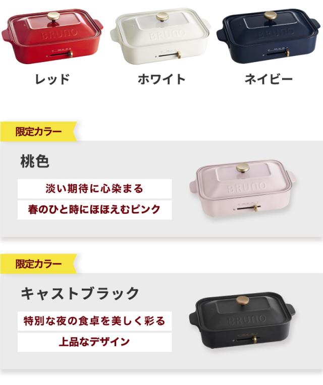 ●毎日の食卓を彩るテーブルウエアの新定番BRUNO(ブルーノ)ホットプレート。今までのホットプレートにはなかった鋳物ホーローをイメージしたデザインはテーブルウエアのように食卓を彩ります。2〜3人にちょうど良いサイズで、毎日のお料理〜おうちパーティーまで幅広く食卓で“つくる”を愉しめます。