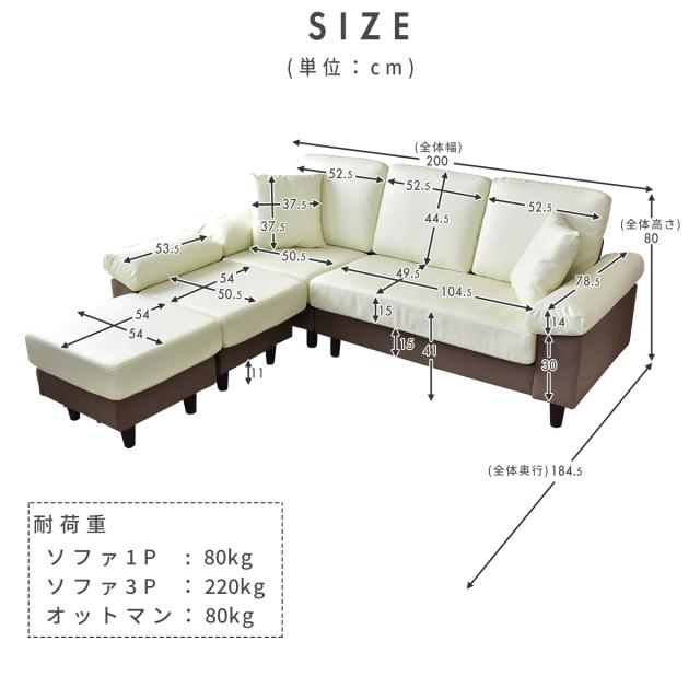 【3P】幅200×奥行78.5×高さ71〜80(cm)