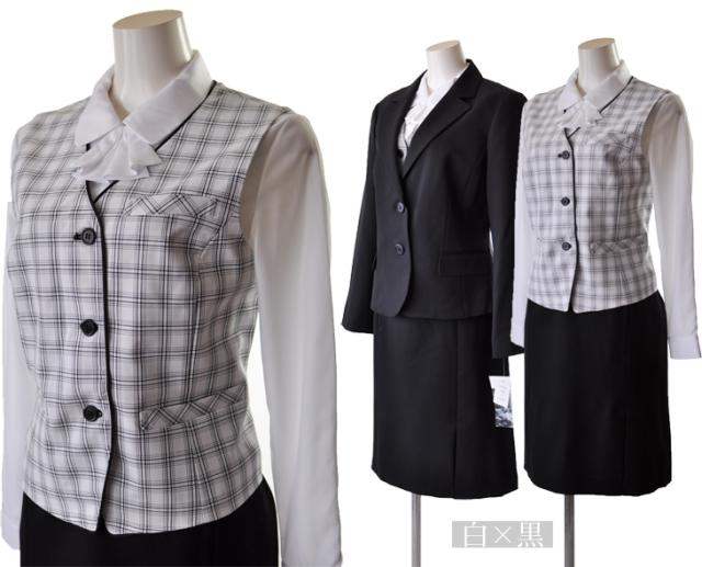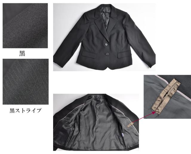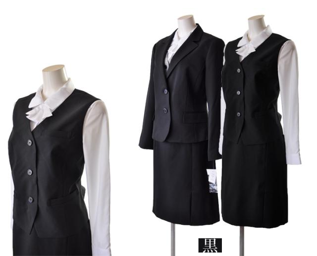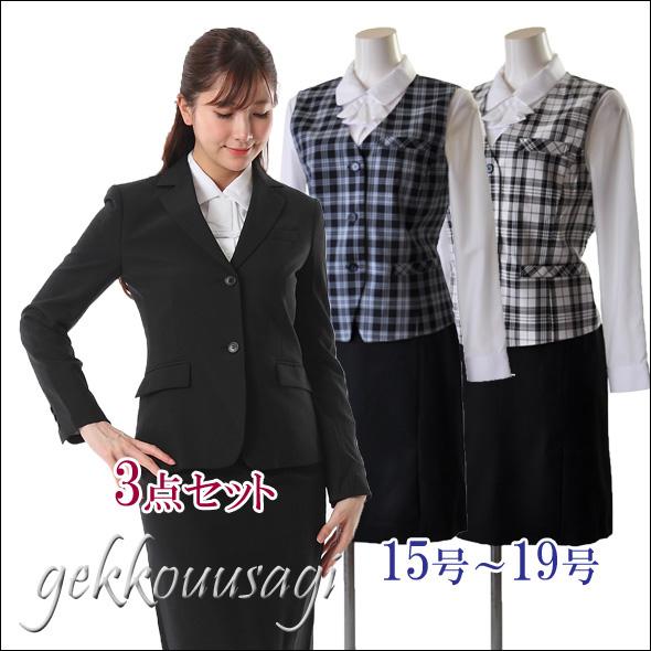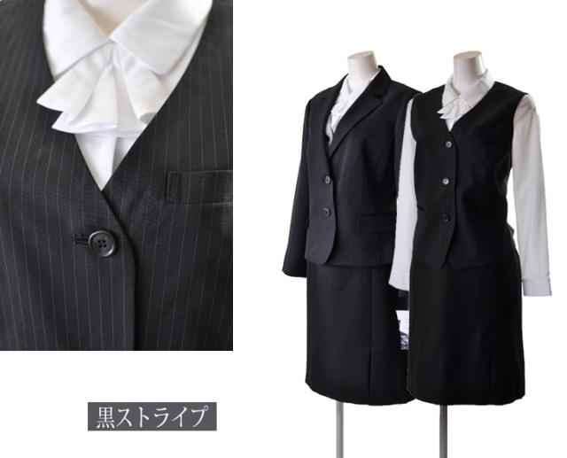 15号/17号/19号 2つボタンジャケット【ブラック・ブラック系ストライプ】+機能性抜群ベスト+ウエストゴム入りスカート 事務服 制服 330