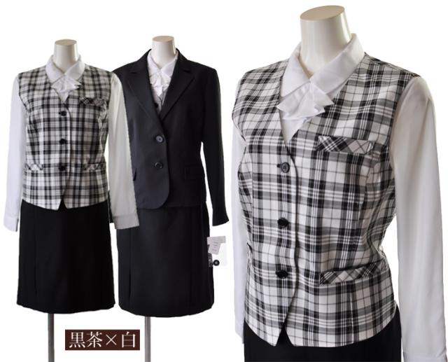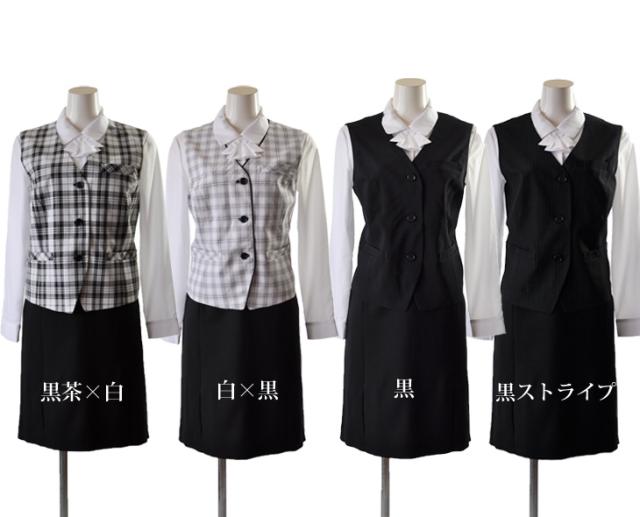 いずれも撥水性に優れ、多少の雨や生活汚れをはじいてくれます。ベストはブラウスに合うVネックライン。黒茶×白、白×黒は手洗い可能です。左胸、左内側、ウエスト2か所の計4か所ポケットがあります。後ろの飾りベルトで小幅調節可能です。黒、黒ストライプは消臭・抗菌効果のあるデオドランテープを使用。家庭の洗濯機でネット洗いできます。ベストはペンを差したり名札がつけられる左胸ポケットとウエスト2か所の計3か所ポケットがあります。後ろ飾りベルトで小幅調節可能。スカートは前2つプリーツ。スカートは両サイドゴム入りなので長時間着てもラクラク。後ろファスナー開きです。