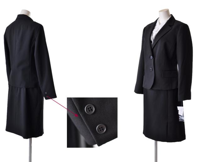 2つボタン、肩パット入り、袖口スリット入り。
