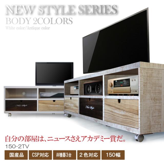 テレビ台 幅150cm アンティーク 2段 完成品 国産 木製 天然木 北欧 日本製 引出し 桐 キャスター付き 収納150-2TV Nスタイル(代引不可)【送料無料】
