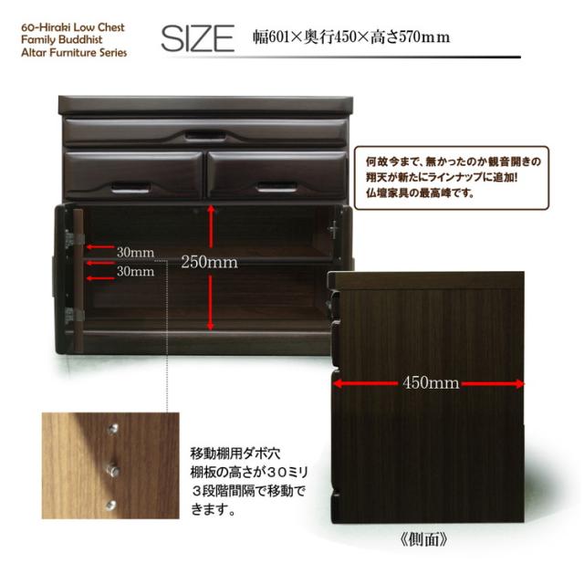 チェスト 仏壇 幅60cm 高さ57cm 観音開き 国産 完成品 仏壇タンス 仏壇チェスト 収納ボックス 収納ラック 木製 桐 60幅L扉 翔天(代引不可)【送料無料】