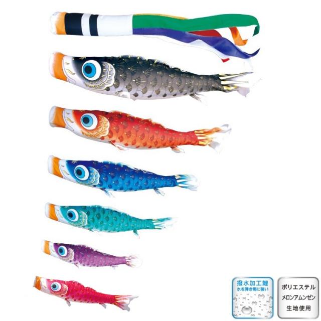 黒鯉 1.2m、赤鯉 1m、青鯉 0.8m、緑鯉 0.8m、紫鯉 0.8m、ピンク鯉 0.8m、夢五色吹流し 1.2m