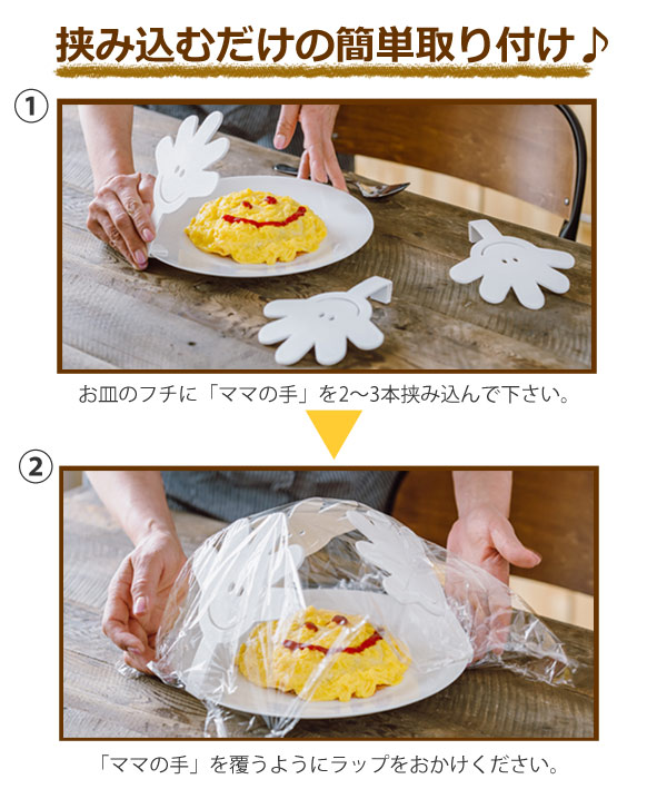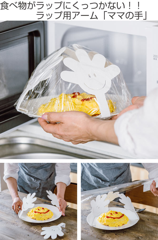 食べ物がラップにつかない ラップ用アーム ママの手 ホワイト 3個入 ( 電子レンジ対応 3個セット 便利グッズ キッチン便利グッズ アイデア商品 電子レンジOK キッチンクリップ キッチン雑貨 お皿用 食器用 取り付け簡単 )