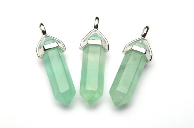 両剣ポイント★ グリーンフローライト 40x9mm ペンダントトップ_PR5018