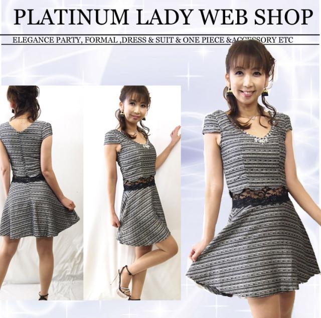 送料無料 「沖縄、離島の方は除外です」【クリスタルビジュー装飾&ツイード素材ウエストレースミニドレス】